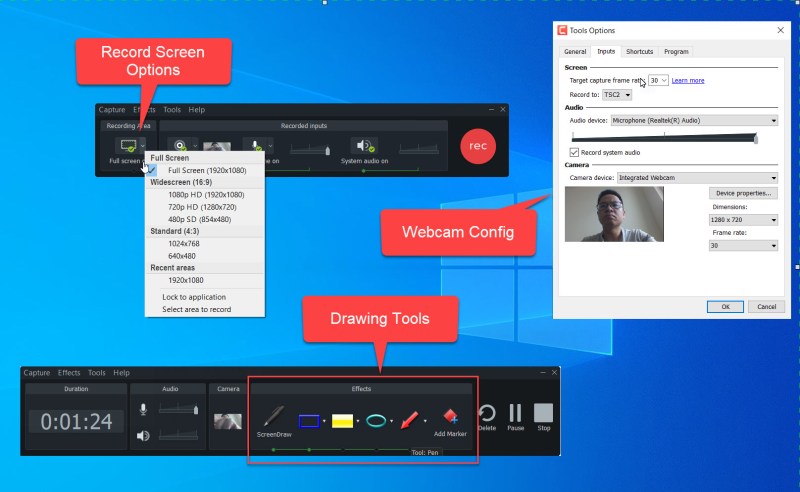 First thing first, Camtasia 2020 screen recorder is very similar to 2019 version, which lets you record your computer screen in different modes i.e full screen, a specific part, or a locked application with audio, and your webcam simultaneously. In Camtasia, your recorded video will be displayed in different tracks on the timeline where you can modify your system audio, mouse cursor effect, capture input keyboards, drawing on the screen while recording and adjust your webcam size, and position easily. It’s very flexible to use Camtasia when it comes to recording screen.