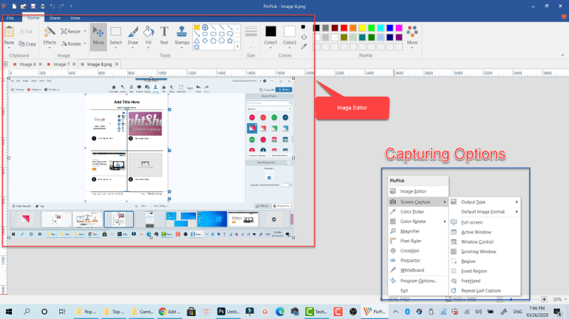 PicPick is a little-known screen capture software for all Windows computer. It also has different screen capturing options such as full screen capture, region capture, Window capture as well as scrolling capture like Snagit 2021. Added to that, the image editor is easy to use too. If you don’t want to spend your money purchasing a screen capture software, PicPick is the right option for you.