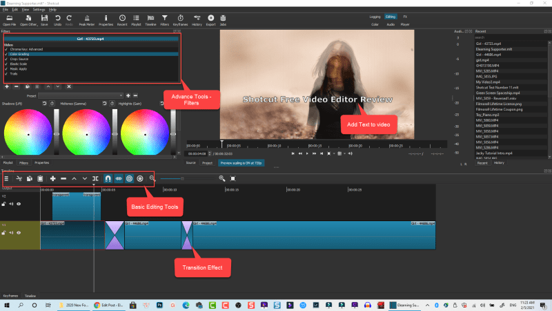 Like I mentioned earlier at the beginning of this post, Shotcut has all the basic video editing feature plus some advance tools like chroma key, video keyframe and color grating tools. With Shotcut, you can easily cut, trim out unwanted part of the clips, add text to your videos as well as crop filters, scale effect and more. You can also add video keyframes to control the size, position and opacity of the clip if you want. Each advance option will have more parameter that you can adjust to get the look that you want.