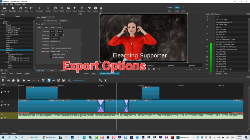 Shotcut offers different export options and hardware configurations. Added to that, you can also continue editing your project while it’s exporting your timeline. It’s very handy when you’re working on a big project which need to export a part of the timeline but don’t want to stop your work. All in all, There are various video formats, and codecs for you to choose in Shotcut.