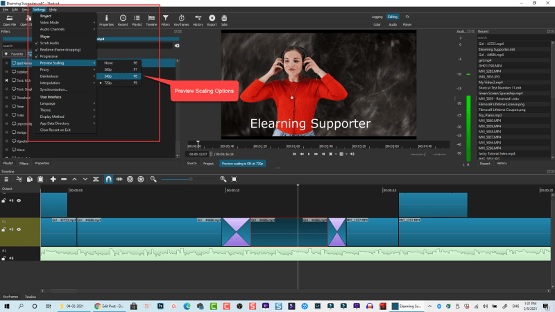 Like other video editing software which require high end machine to get smooth playback and editing preview, Shotcut’s system requirement is almost the same. You will need a powerful enough computer to run the software smoothly, or get fast rendering speed, especially when you want to add a bunch of filters to your project. If you want to edit video with Shotcut on a low end computer, don’t forget to lower down the preview scaling to get better playback. The default preview scaling of Shotcut is 720p, but you can lower to 540p or 360p if you want.