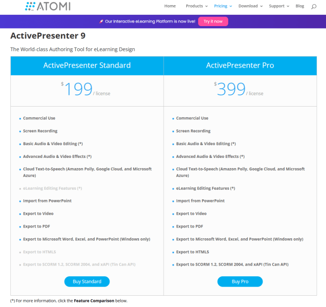 As said above, free version of ActivePresenter is only available for commercial use. If you want to use it for commercial purpose, you may need to purchase a license which comes in following plans: