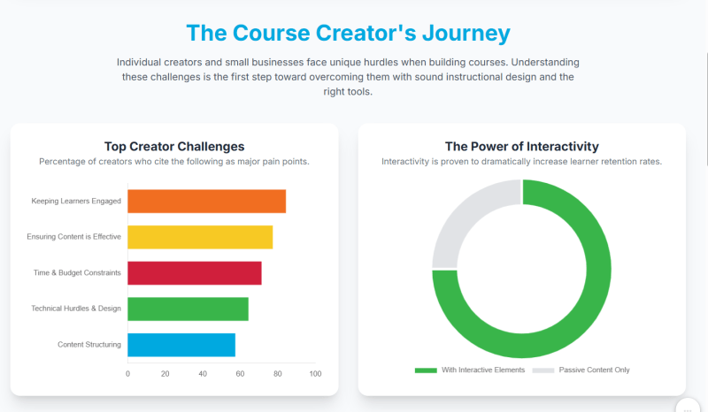 The journey of creating an e-learning course can seem daunting. Many individual creators and small businesses face common challenges: