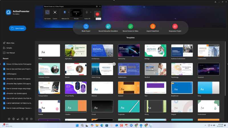ActivePresenter by Atomi Systems is arguably the most powerful and feature-complete free screen recorder on this list, yet it remains surprisingly underrated in the general user community. It’s primarily designed as an all-in-one tool for creating e-learning content, but its capabilities extend far beyond that. It functions as a screen recorder, video editor, and interactive content authoring tool rolled into one seamless package. For educators, trainers, and tutorial creators, ActivePresenter is a dream come true, offering features that are typically locked behind expensive paywalls.