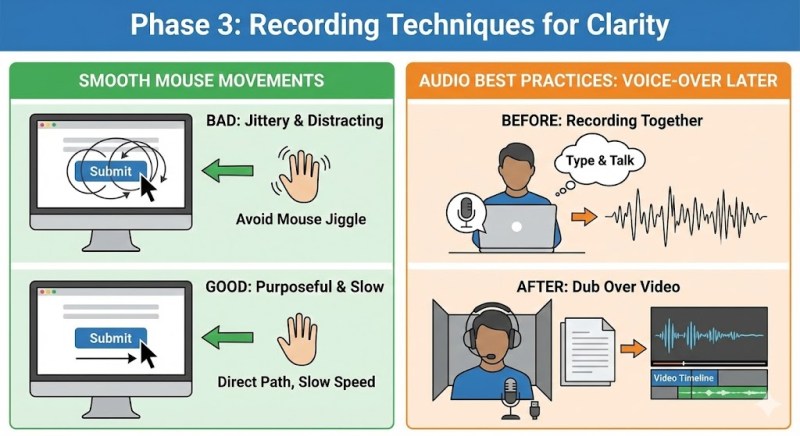 - Slow Down: Perform actions slightly slower than you would naturally. Give the viewer time to process where you are clicking.