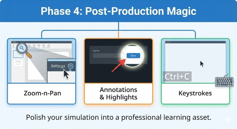 Creating high-quality software simulations doesn’t require a Hollywood budget. It requires discipline in preparation, deliberate movement during recording, and the right software to bring it all together.