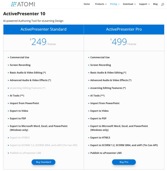 - The cost of a Standard or Pro license is significantly lower than a single year’s subscription to competitors like Articulate 360 or Adobe Captivate.