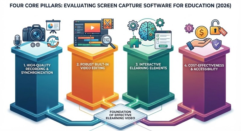When evaluating screen video capture software for educational purposes in 2026, you should look for four core pillars: