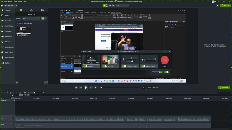 - Seamless All-in-One Workflow: Unlike OBS (which requires a separate editor) or basic recorders, ActivePresenter allows you to record, edit, and design interactions in a single interface. You can record your screen, edit the audio/video on a multi-track timeline, and add quizzes without ever switching software.