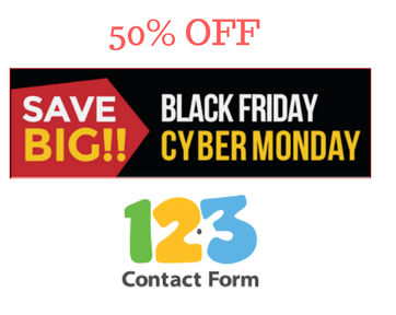 123contactform Black Friday 2017. Discount 50% OFF for all plan. Buy now to save half price. End date January 31, 2018.